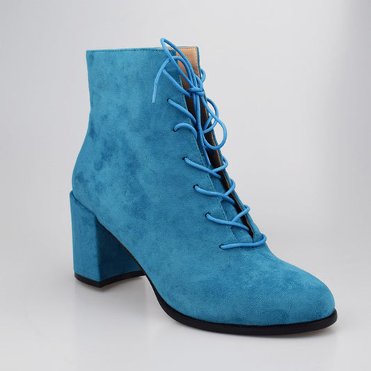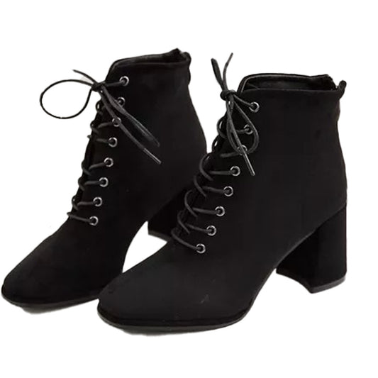 Velvet Lace Up Chunky Heel Shoes